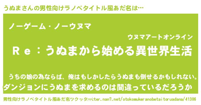 | 女子向けラノベタイトル風あだ名 | 『闇のうぬま』『死神うぬまの再婚』 |