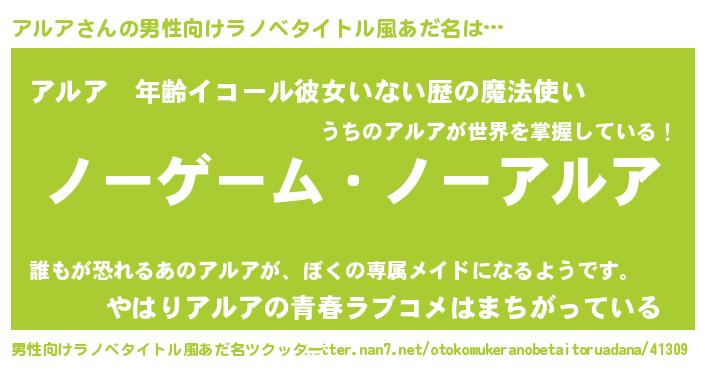 | ヒーロー風カッコイイあだ名 | 『慈愛の使者アルア』『ネオアルア』 |