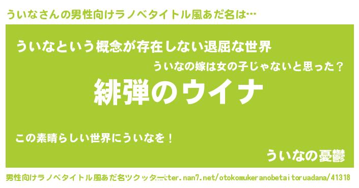 | 胡散臭い通販商品みたいなあだ名 | 『絶対に幸福をもたらす水素水…その名も「ういな」』 |