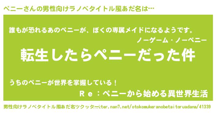 | 女子向けラノベタイトル風あだ名 | 『ペニーの玉の輿計画!』『闇のペニー』 |