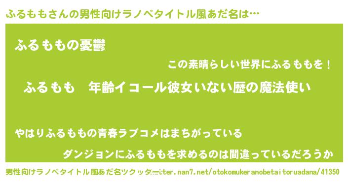 | 女子向けラノベタイトル風あだ名 | 『ふるももの玉の輿計画!』 |