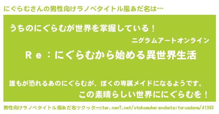 | 意味不明あだ名 | 『自称にぐらむ』『ペロリンにぐらむ』 |