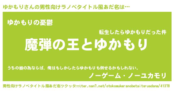 | 女子向けラノベタイトル風あだ名 | 『ゆかもりが死なない童話 林檎のゆかもりの診療簿』 |