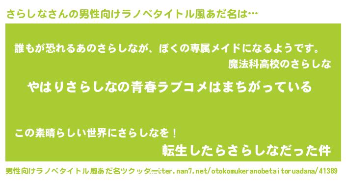 | ファンタジー風あだ名 | 『エターナルサラシナー』『ゼサラトゥ』 |