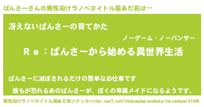 | ヘコむあだ名 | 『ぱんさー(震え声)』『ぱんを』 |