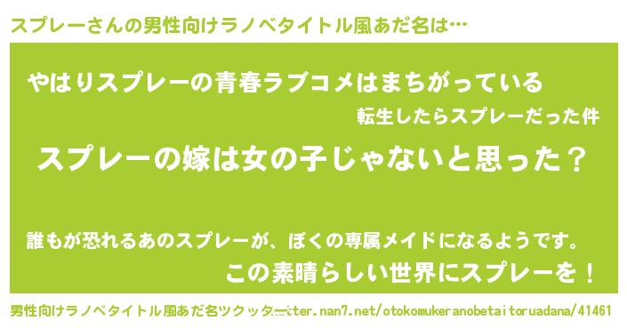 | ヒーロー風カッコイイあだ名 | 『炎刃騎士スプ』『ウルトラスプレーマン』 |
