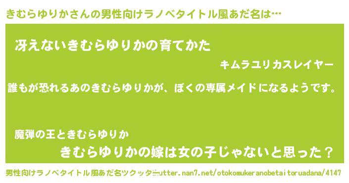 | 女子向けラノベタイトル風あだ名 | 『異世界でカフェきむらゆりかを開店しました。』 |