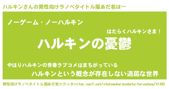| 意味不明あだ名 | 『ペロリンハルキン』『永久保存ハルキン』 |