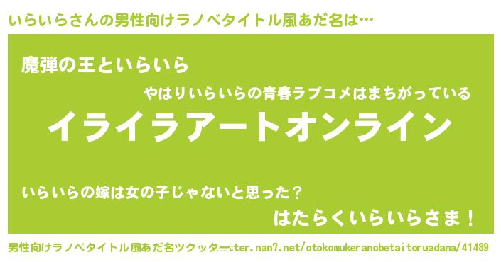 | 胡散臭い通販商品みたいなあだ名 | 『億万長者になれるブレスレット…その名も「いらいら」』 |