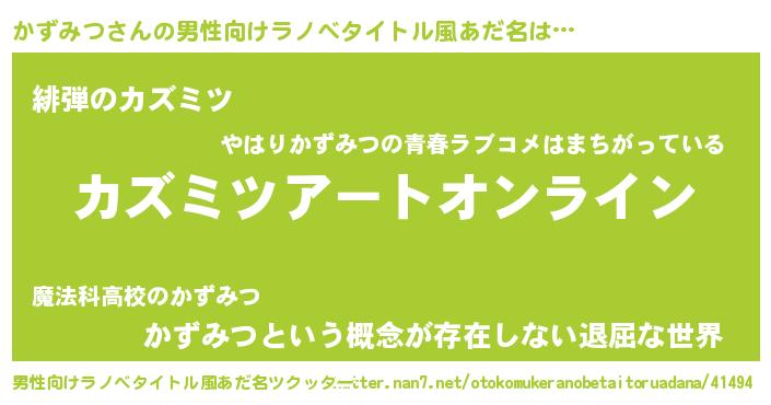 | 女子向けラノベタイトル風あだ名 | 『かずみつ姫と円卓の騎士』 |