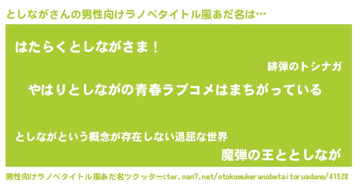 | 女子向けラノベタイトル風あだ名 | 『としながの雑貨屋さん』 |