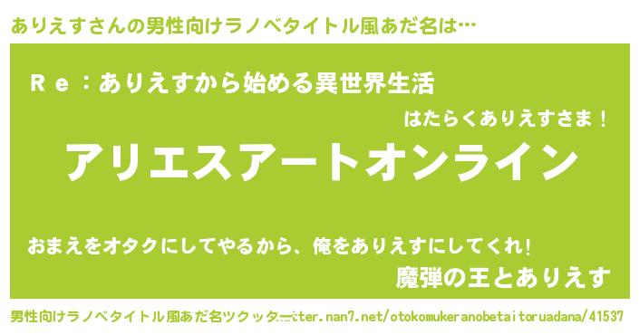 | 胡散臭い通販商品みたいなあだ名 | 『億万長者になれる霊験あらたかなお札…その名も「ありえす」』 |