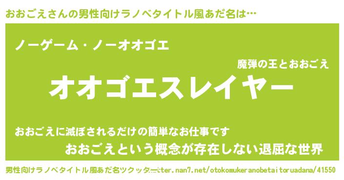 | ヒーロー風カッコイイあだ名 | 『正義の使者おおごえ』『ネオオオゴエ』 |