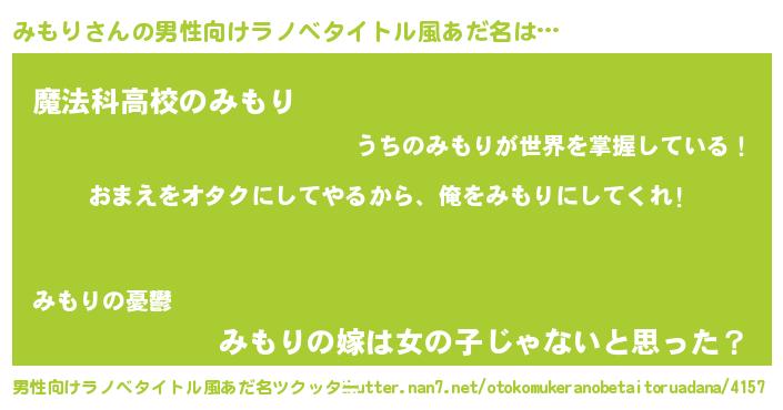 | 女子向けラノベタイトル風あだ名 | 『みもり夫妻のなれそめ』 |