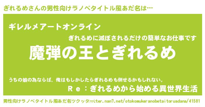| 意味不明あだ名 | 『住所不定無職ぎれるめ(4歳)』 |