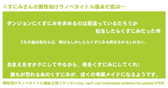 | 女子向けラノベタイトル風あだ名 | 『くすにみの婚約者』 |