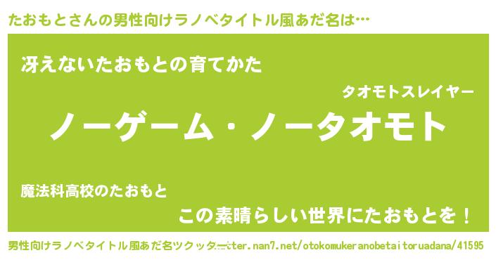 | 女子向けラノベタイトル風あだ名 | 『死神たおもとの再婚』 |