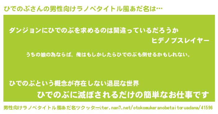| ファンタジー風あだ名 | 『エターナルヒデノブー』『クインヒット』 |