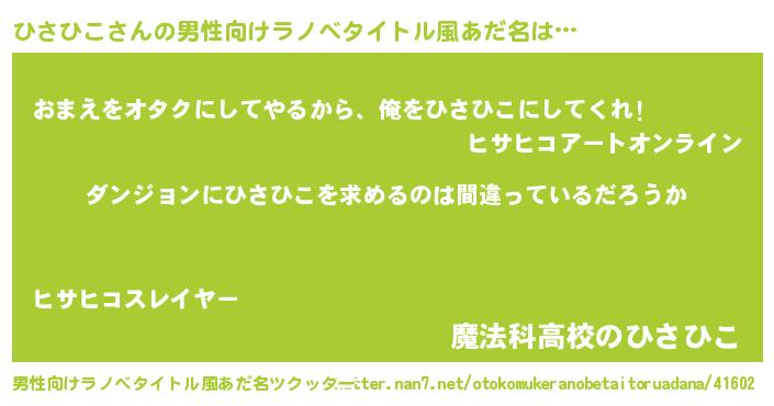 | ポケモン風あだ名 | 『ヒヒサヒコ』『ヒックウザ』 |