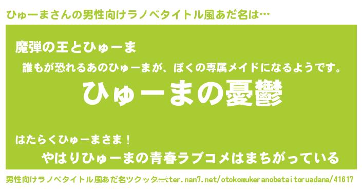 | 胡散臭い通販商品みたいなあだ名 | 『必ず成功する水晶球…その名も「ひゅーま」』 |