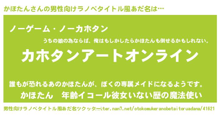 | 女子向けラノベタイトル風あだ名 | 『かほたん姫と円卓の騎士』 |