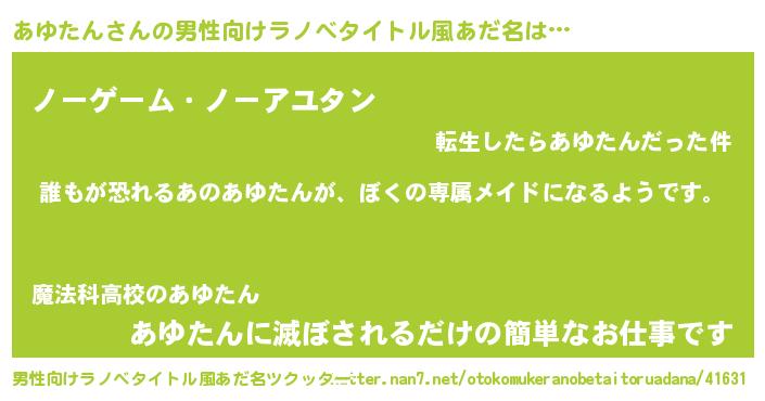 | 意味不明あだ名 | 『永久保存あゆたん』『自称あゆたん』 |