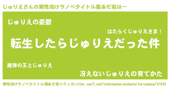 | 胡散臭い通販商品みたいなあだ名 | 『モテモテ間違いなしブレスレット…その名も「じゅりえ」』 |