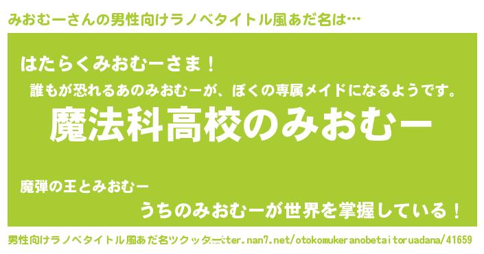 | 女子向けラノベタイトル風あだ名 | 『みおむーなんてお断りですっ。』 |