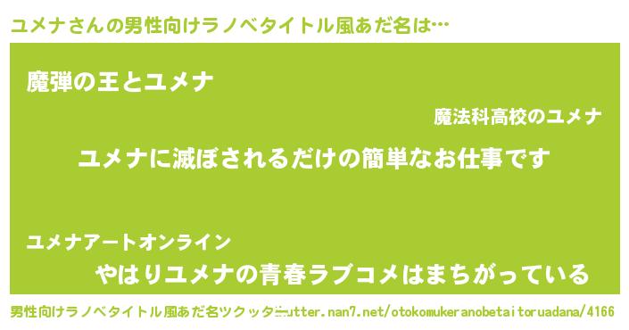| 意味不明あだ名 | 『住所不定無職ユメナ(14歳)』『自称ユメナ』 |