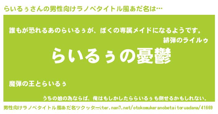 | 胡散臭い通販商品みたいなあだ名 | 『必ず成功する水晶球…その名も「らいるぅ」』 |
