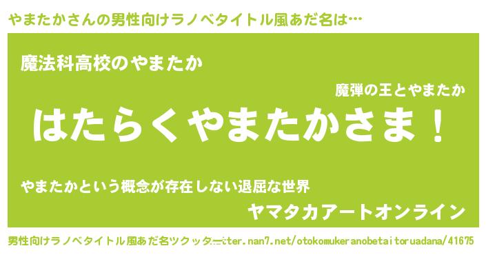 | ヘコむあだ名 | 『やまっふぃ~』『やまたか(小並感)』 |