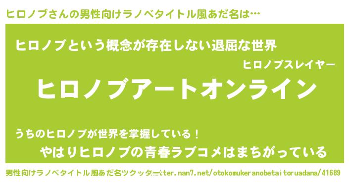 | 胡散臭い通販商品みたいなあだ名 | 『億万長者になれるブレスレット…その名も「ヒロノブ」』 |