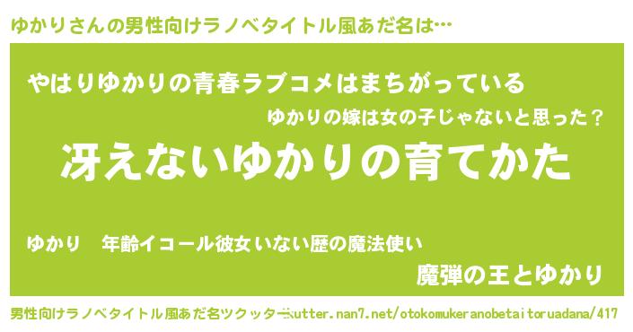 | ファンタジー風あだ名 | 『カークユカラー』『エターナルユカリー』 |
