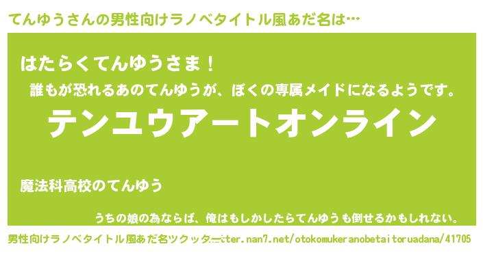 | 胡散臭い通販商品みたいなあだ名 | 『億万長者になれる霊験あらたかなお札…その名も「てんゆう」』 |