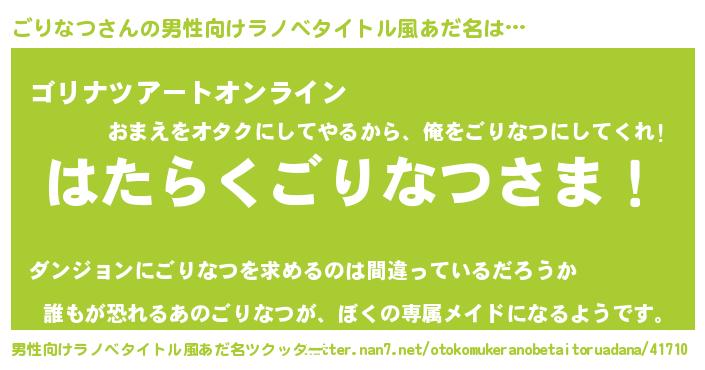 | 胡散臭い通販商品みたいなあだ名 | 『モテモテ間違いなし霊験あらたかなお札…その名も「ごりなつ」』 |