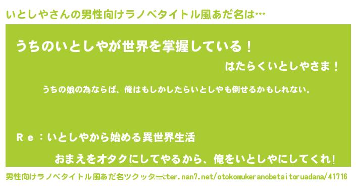 | ヒーロー風カッコイイあだ名 | 『ウルトラいとしやマン』『仮面イトダー』 |