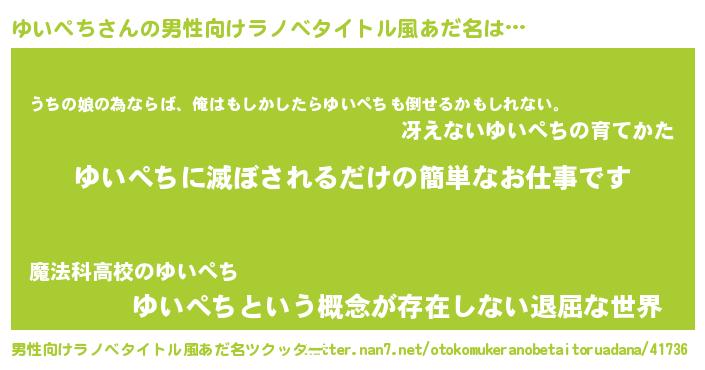 | ファンタジー風あだ名 | 『エターナルユイペチー』『ゼユイトゥ』 |