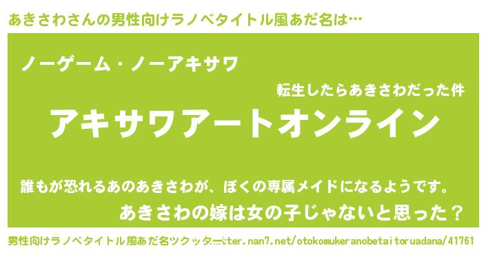 | 胡散臭い通販商品みたいなあだ名 | 『億万長者になれる水晶球…その名も「あきさわ」』 |
