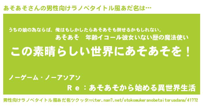 | 女子向けラノベタイトル風あだ名 | 『悪役あそあそに転生したようですが、知った事ではありません』 |