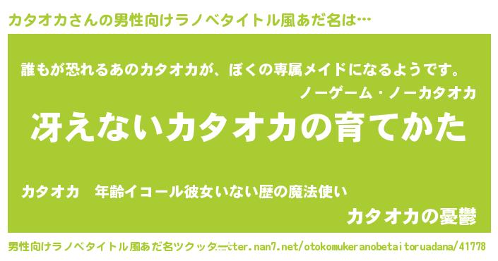 | 女子向けラノベタイトル風あだ名 | 『シンデレラカタオカ家の靴箱館』 |