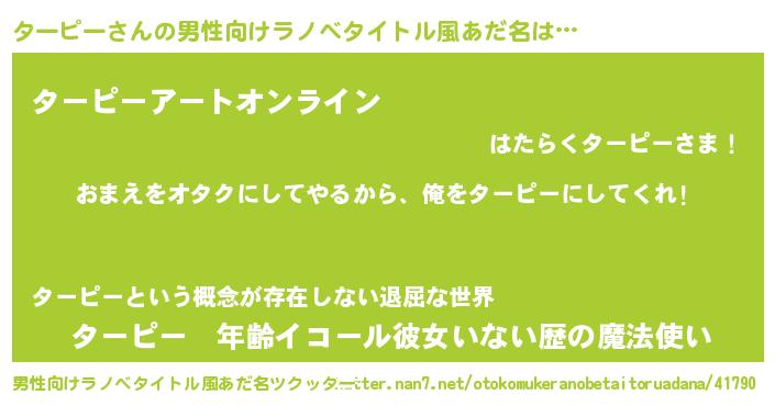 | ヘコむあだ名 | 『ターっふぃ~』『ターピー(小並感)』 |