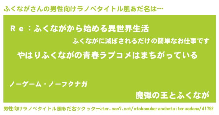 | 肩書あだ名 | 『ふくなが国家主席』『ふくなが閣下』 |