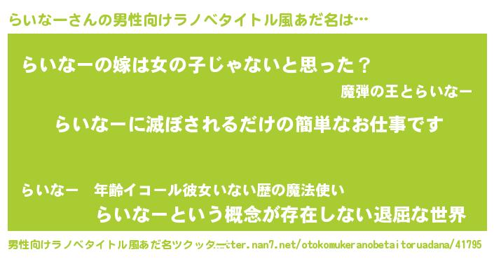 | ヘコむあだ名 | 『らいぷりん』『らいなー(笑)』 |