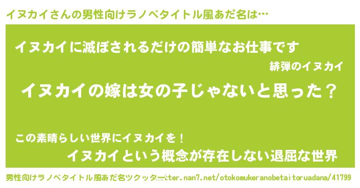 | 意味不明あだ名 | 『とにかく怪しいイヌカイ』 |