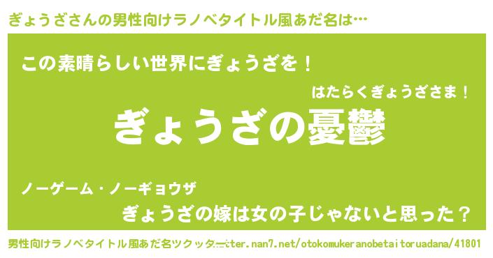 | 女子向けラノベタイトル風あだ名 | 『(仮)ぎょうざのやんごとなき事情』 |