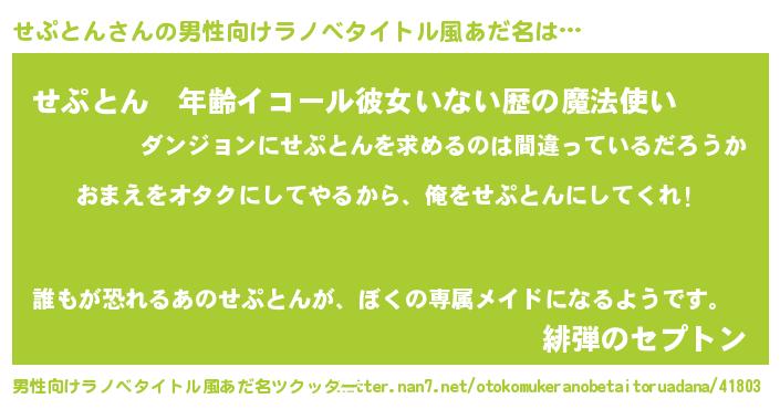 | 女子向けラノベタイトル風あだ名 | 『せぷとん夫妻のなれそめ』 |