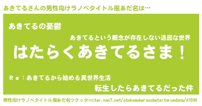 | ヘコむあだ名 | 『あきにゅー』『あきてる(小並感)』 |