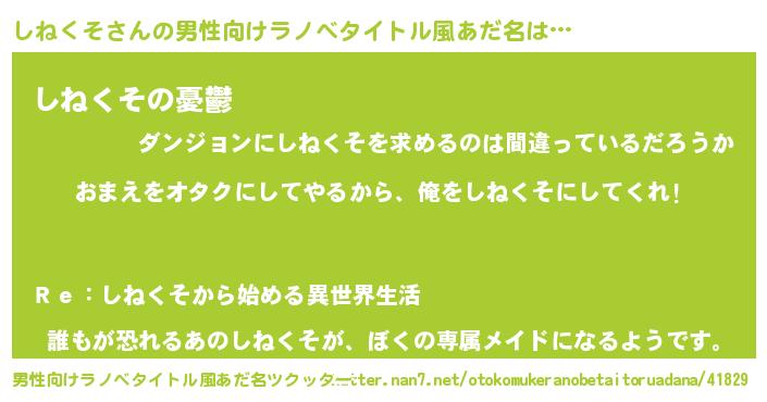 | 女子向けラノベタイトル風あだ名 | 『しねくそ夫妻のなれそめ』 |