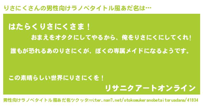 | 胡散臭い通販商品みたいなあだ名 | 『前代未聞の健康食品…その名も「りさにく」』 |