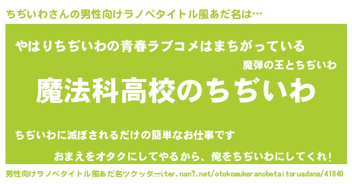 | 女子向けラノベタイトル風あだ名 | 『ちぢいわなんてお断りですっ。』 |